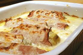 Gratin au Chicons — запечённый цикорий, иногда обёрнутый ветчиной.